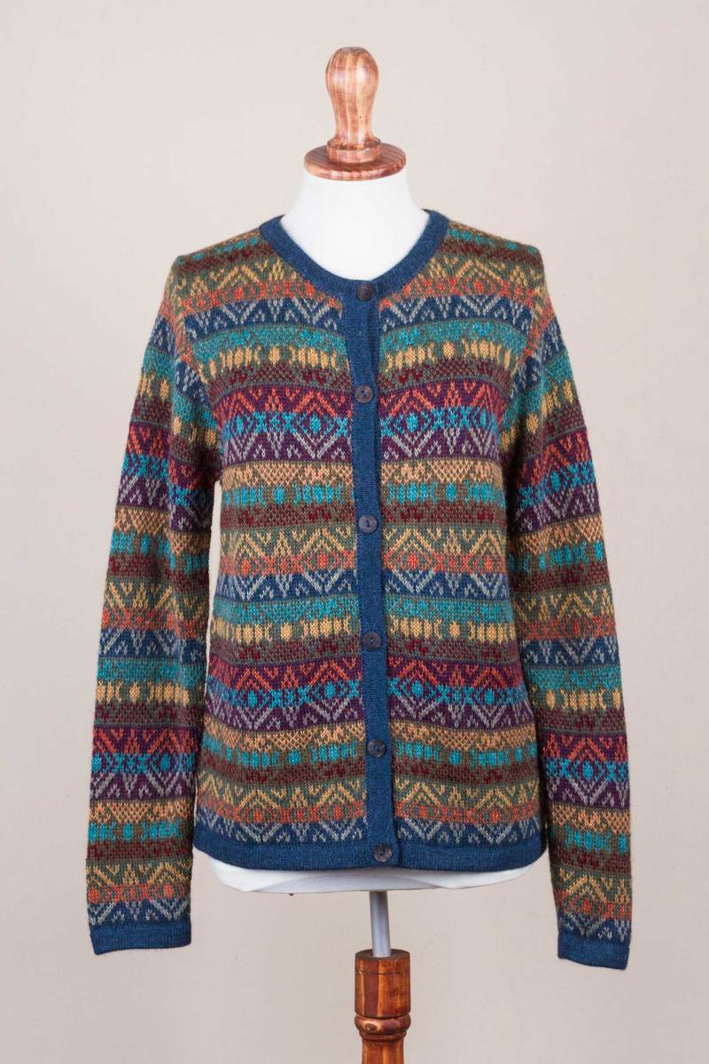 You can find our 100% alpaca cardigan 'Diamond Variety' by Fernando Cano in clothing categories such as Alpaca Wool Sweaters and Cardigans Sweaters. Enjoy exploring these sections for other Novica treasures.
