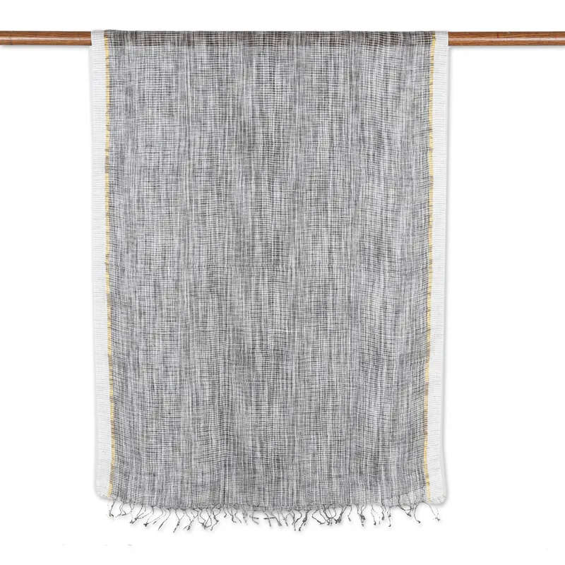 You can find our linen shawl 'Timeless Charm in Black' by Arnab Roy in accessories categories such as Linen Shawls. Enjoy exploring these sections for other Novica treasures.