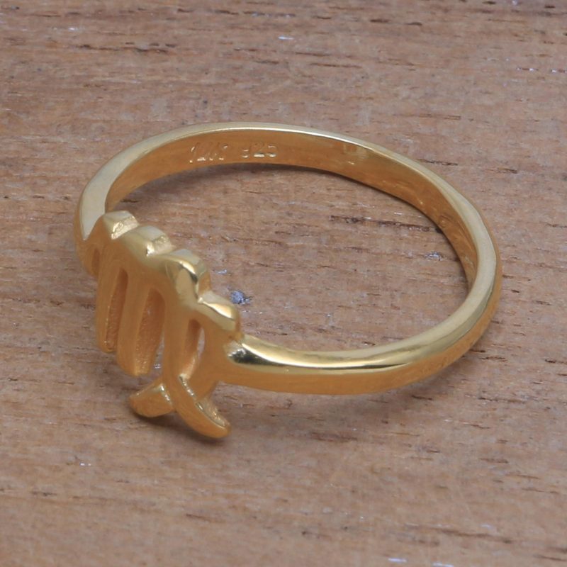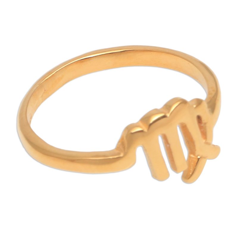 Crafted of sterling silver with a gleaming 18k gold plating, the symbol for the zodiac sign Virgo at the front of this band ring from Bali. Representing the birth dates between August 23 and September 23, Virgo is often depicted as a maiden. Asmara Putra designs this simple accessory for expressing your identity, which circles the finger with a simple band.