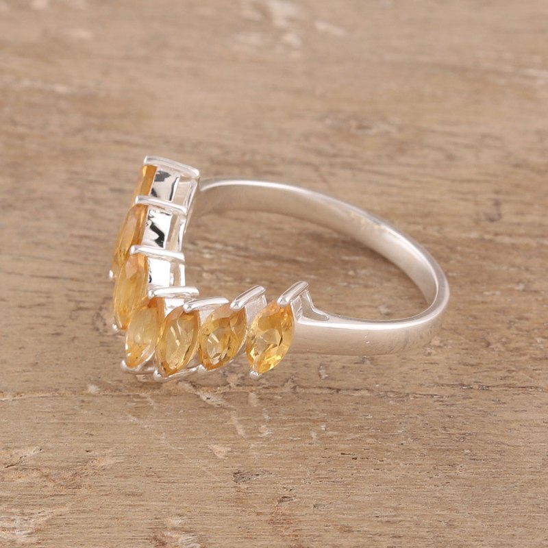 Totaling two carats, seven marquise gemstones of faceted citrine decorate the front of this band ring from India. Presented by Alok Jain, the ring is crafted of high-polish sterling silver by local artisans.