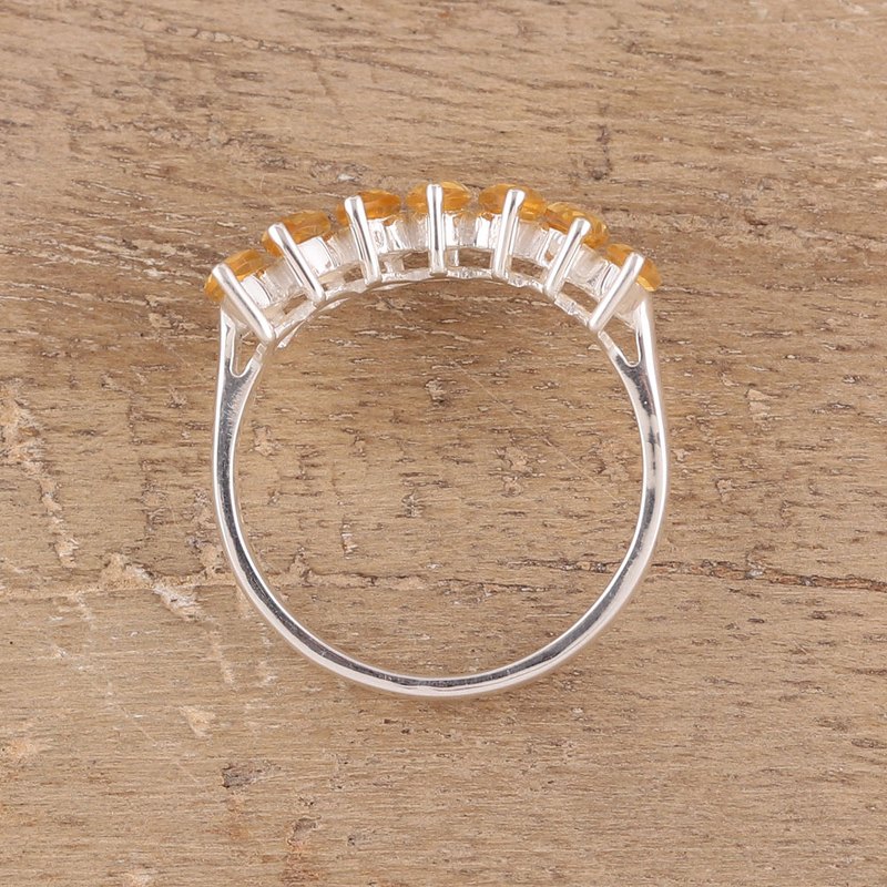 This finely crafted ring features clear, brilliant golden citrines that catch the sunlight beautifully. The ring is comfortable on my hand and goes perfectly with my citrine earrings. So happy I purchased it.