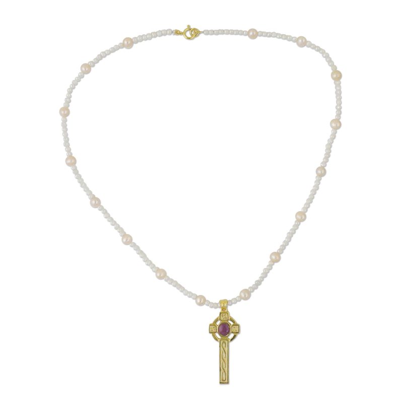 You can find our gold plated cultured pearl pendant necklace 'Faithful Soul in Purple' by Matta in jewelry categories such as Christian Necklaces, Cross Necklaces, Birthstone Necklaces, Celtic Necklaces and PEARL Freshwater Necklaces. Enjoy exploring these sections for other Novica treasures.