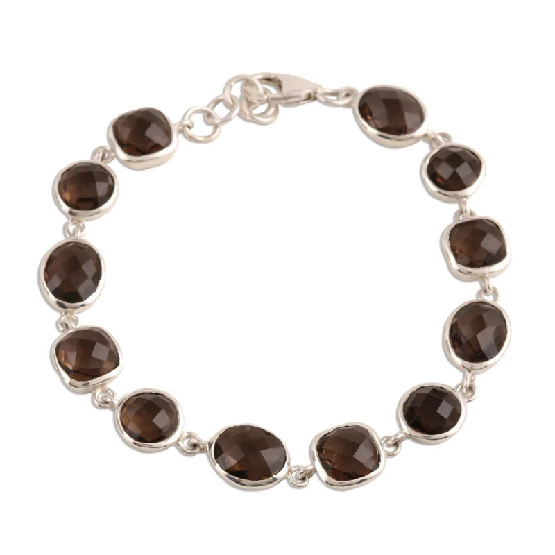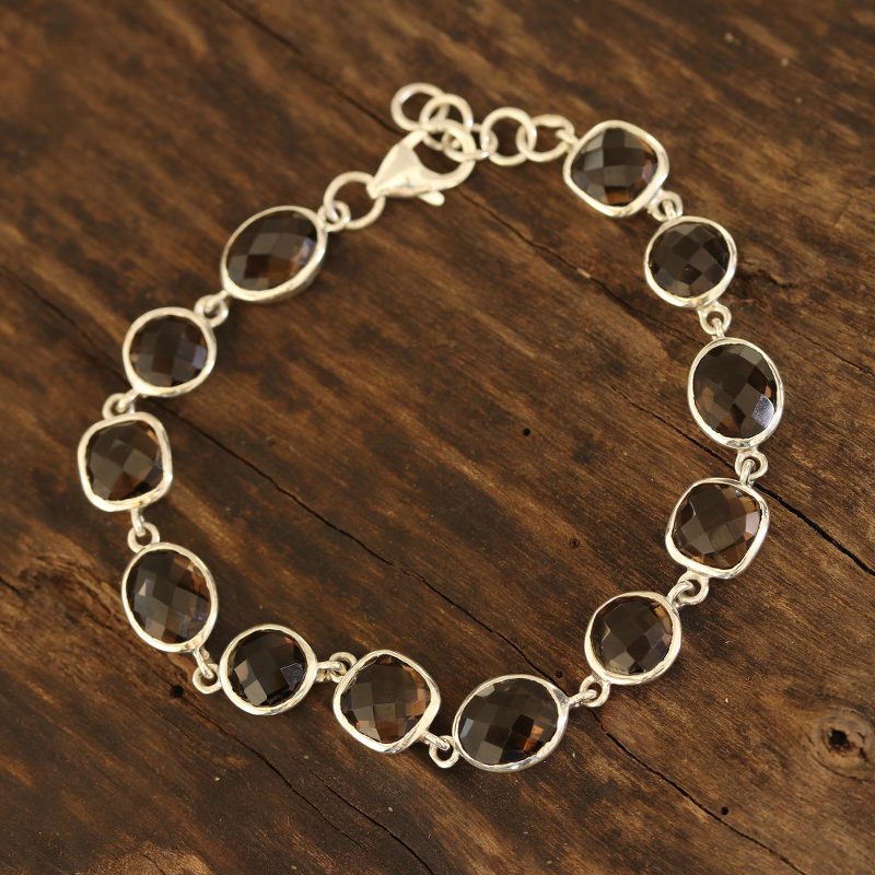 You can find our smoky quartz link bracelet 'Dazzling Princess' by Neetu Barathi in jewelry categories such as Gemstone Bracelets, Smoky Quartz Bracelets, Silver Bracelets, Sterling Silver Bracelets and Link Bracelets. Enjoy exploring these sections for other Novica treasures.