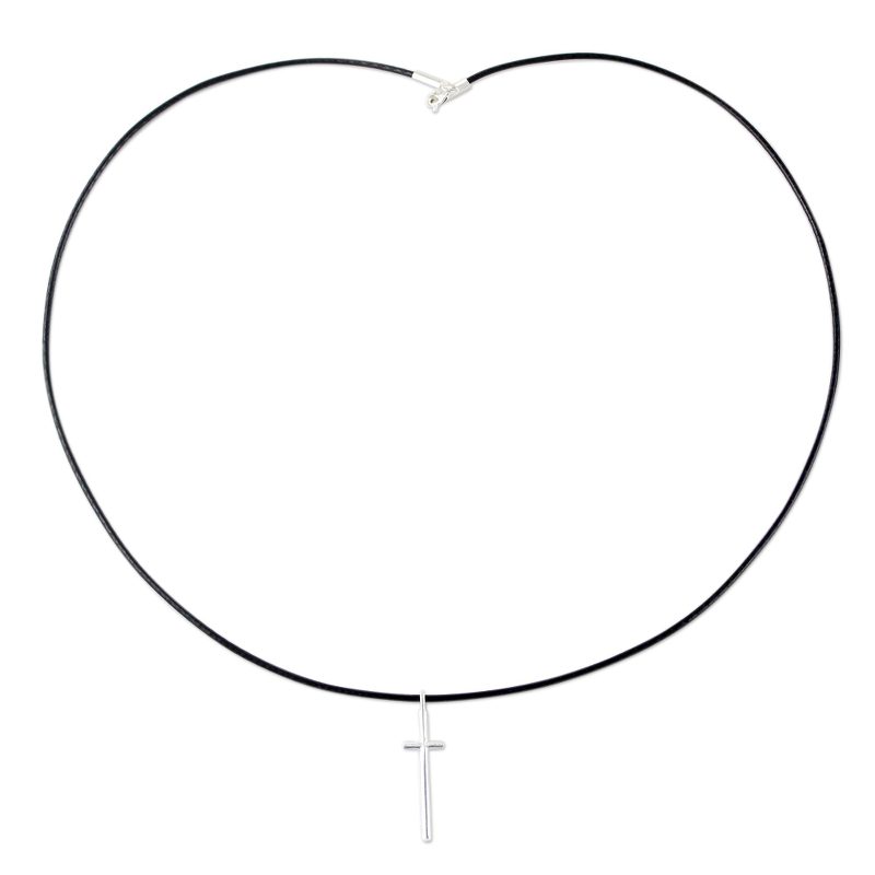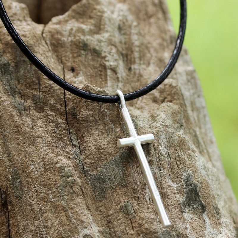 Thai artisan Sarote Lochotinunt crafts this sterling silver pendant necklace. The minimalist necklace features a simple and striking brushed silver cross suspended from a black nylon cord.