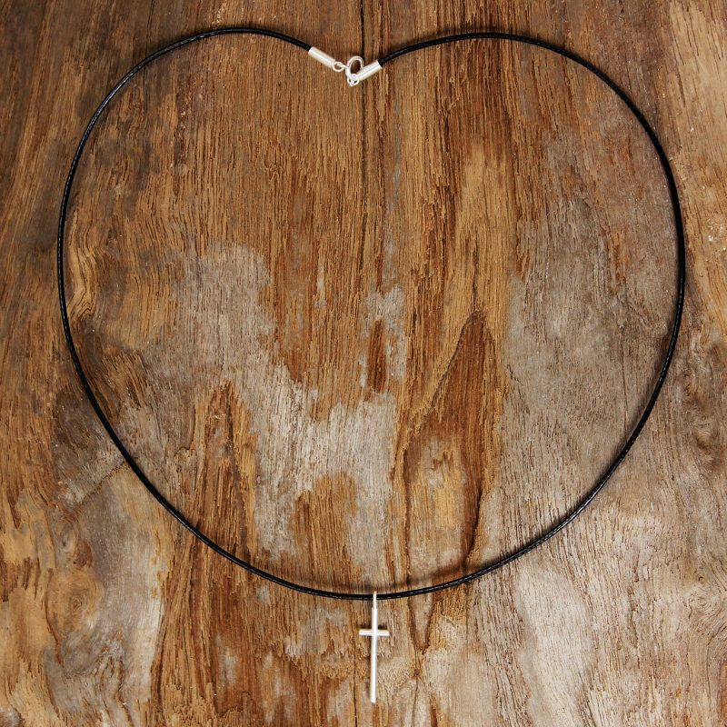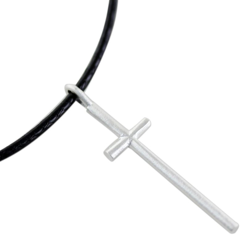 This cross is just what I wanted. A simple statement of faith that I could wear. The nylon cord is a little stiff and was curled up making it difficult to hang properly at first. I stretched the cord out for a couple of days to uncurl it and it started to hang fine. Perhaps a bit less stiff cording would make such a small and delicate cross hang a little better. For the price it is a very nice item and well styled.