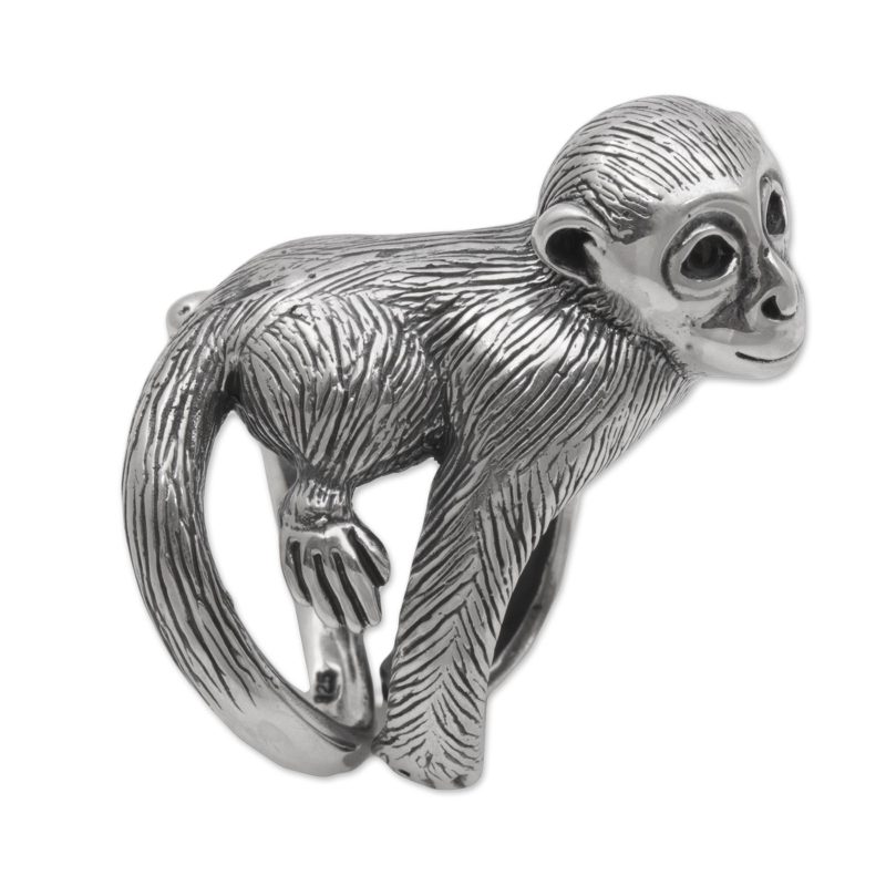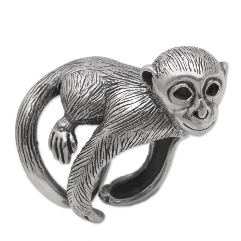 An amusing monkey wraps its limbs around the finger, bringing a sprightly charm to the wearer. Crafted of sterling silver by Indonesian artisans, this wrap ring is presented by Komang Wijayana.