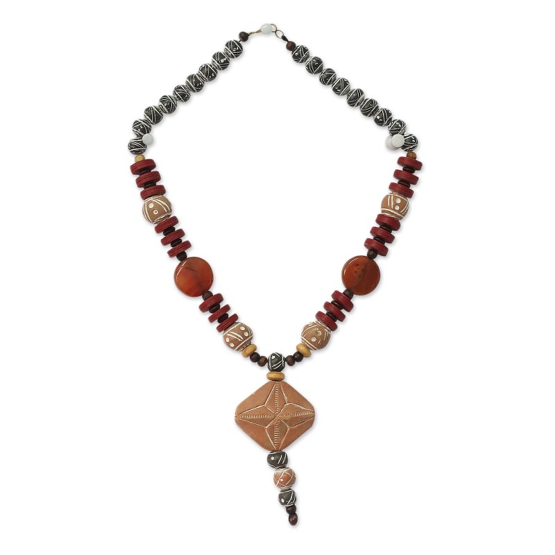 You can find our agate and ceramic pendant necklace 'African Queen of Peace' by Ila Suleyman in jewelry categories such as Birthstone Necklaces, Peace Necklaces, Eco-Friendly Necklaces, Agate Necklaces and Wood Necklaces. Enjoy exploring these sections for other Novica treasures.