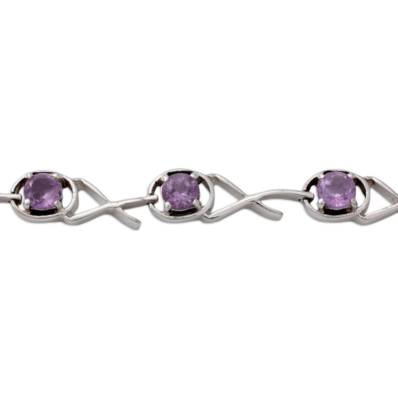 Hema designs a bracelet of modern elegance to showcase the mystical beauty of amethyst. The faceted gems are linked by trendy crosses cast of sterling silver.