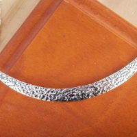 A crescent moon of sterling silver radiates modern elegance in a necklace by Oscar Figueroa. Featuring a hammered finish, the necklace is crafted by hand of Taxco's legendary sterling silver.