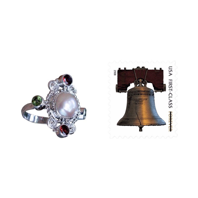 Ornate and beautiful, this sumptuous design is the work of Buana in Bali. He crafts a silver ring centered by a luminous pearl hemisphere. Sterling spirals, sparkling garnet and cool peridot add color, with the gemstones totaling 1.1 carats.