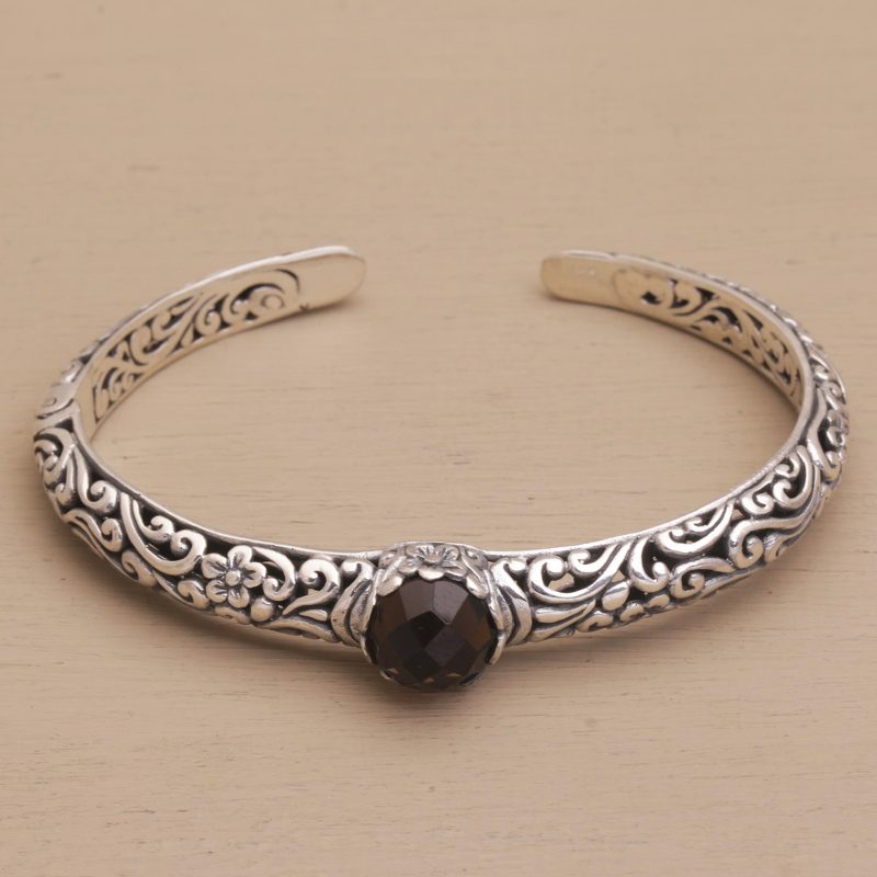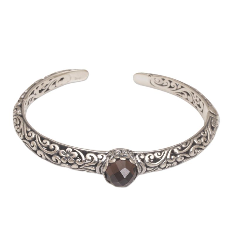 You can find our smoky quartz cuff bracelet 'Forest Nymph' by Komang Wijayana in jewelry categories such as Floral Bracelets, Smoky Quartz Bracelets, Silver Bracelets, Sterling Silver Bracelets and Cuff Bracelets. Enjoy exploring these sections for other Novica treasures.