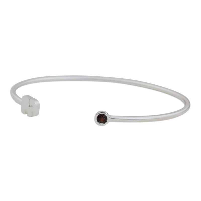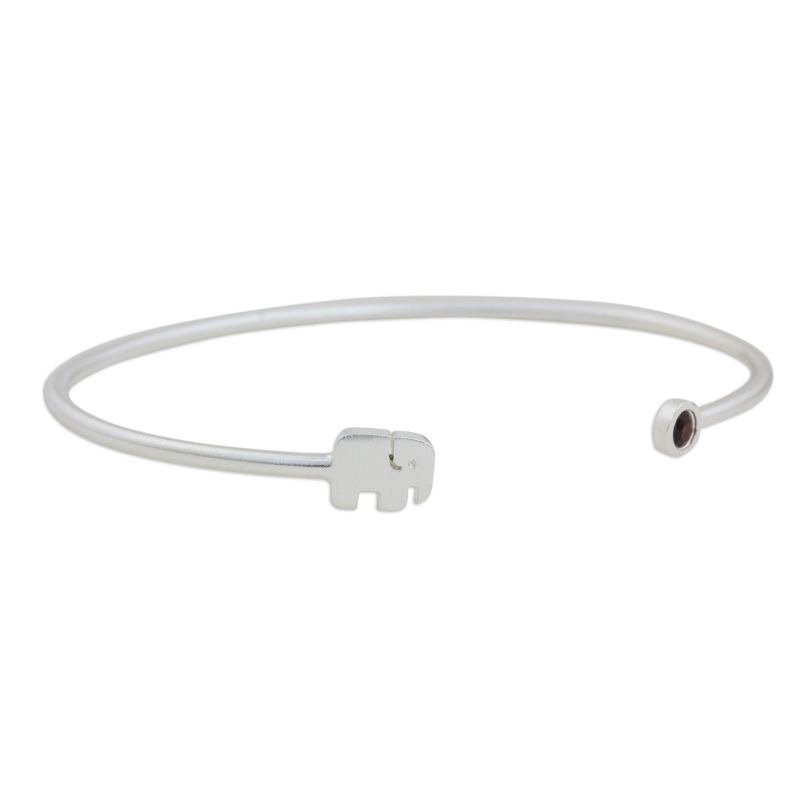 Jantana of Thailand presents this animal-inspired cuff bracelet meticulously hand-crafted from sterling silver. This playful bracelet with a brushed-satin finish features a tiny elephant on one end and a round gemstone of natural garnet on the other.