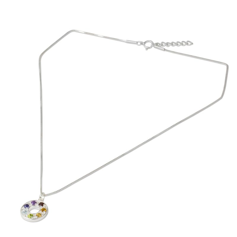 You can find our multigemstone chakra pendant necklace 'Chakra Honor Wheel' by Sarote Lochotinunt in jewelry categories such as Chakra Necklaces, Birthstone Necklaces, Amethyst Necklaces, Iolite Necklaces and Blue Topaz Necklaces. Enjoy exploring these sections for other Novica treasures.