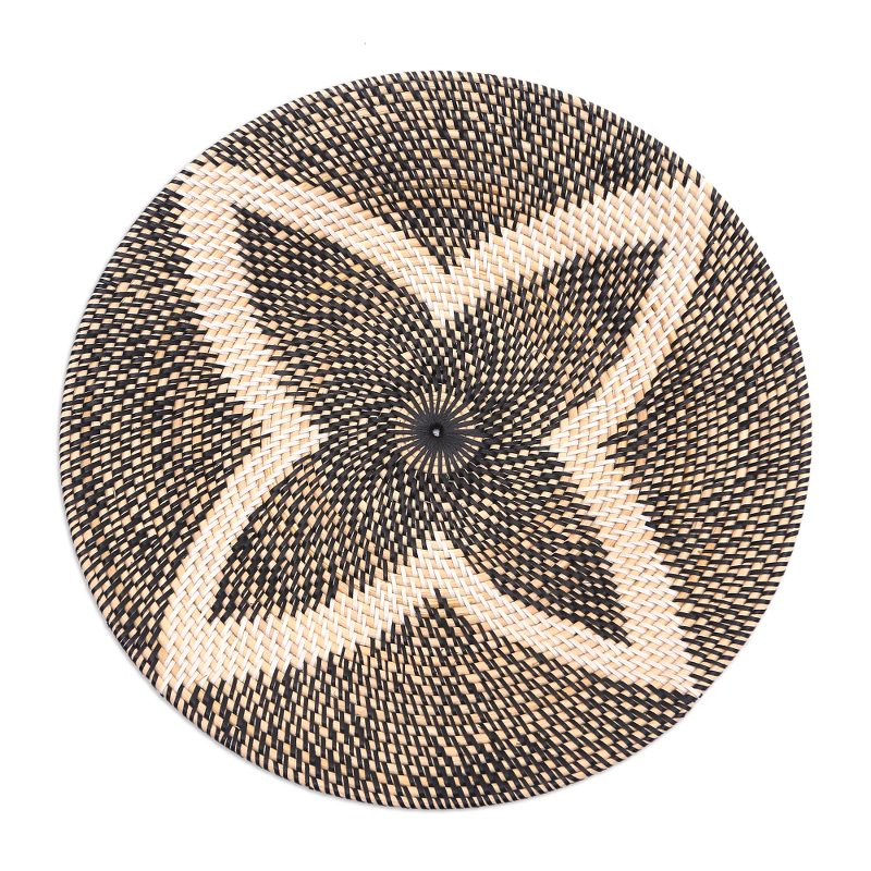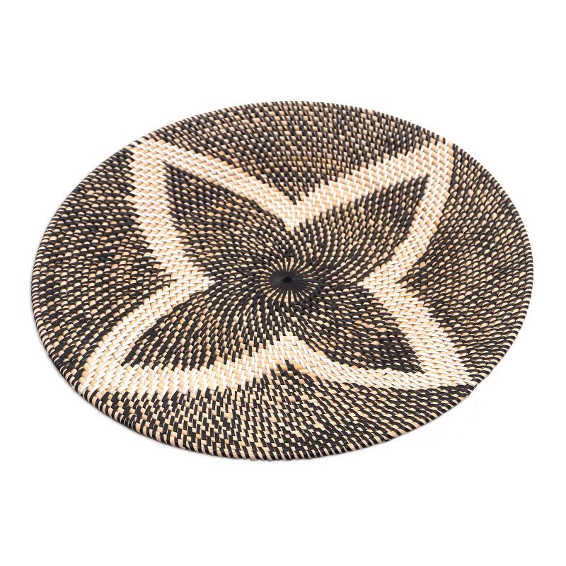 You can find our woven bamboo round tray 'Four Leaves in Black' by Ma'ruf in tableware categories such as Hand Woven Serveware, Natural Fiber Serveware and Trays Serveware. Enjoy exploring these sections for other Novica treasures.