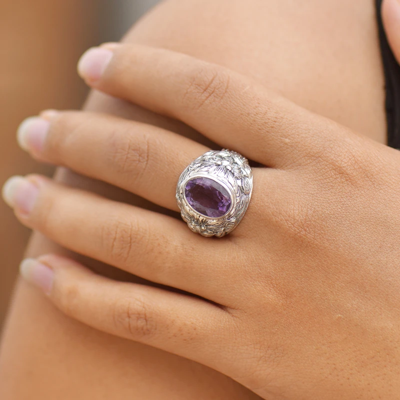 What a beautiful ring!. Amazing quality and beautiful Amethyst. Exactly what I was looking for. I will definitely continue purchasing and supporting Novica!! Joe Ferrero Emmy Award Nominee Radio / TV Personality