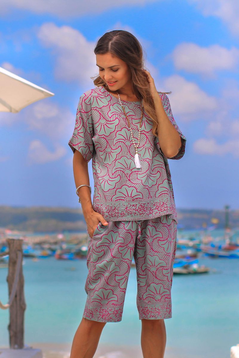Backed by our 100% Happiness GuaranteeInspired by fall, Balinese artisan Endah creates this lovely pair of shorts. Crafted from suave rayon, these shorts are decorated using the batik method; a wax resist is stamped by hand onto the fabric before it is treated with colorful dyes, resulting in entrancing mint green and magenta leaf motifs. These shorts feature a drawstring around the waist and two pockets on the sides.