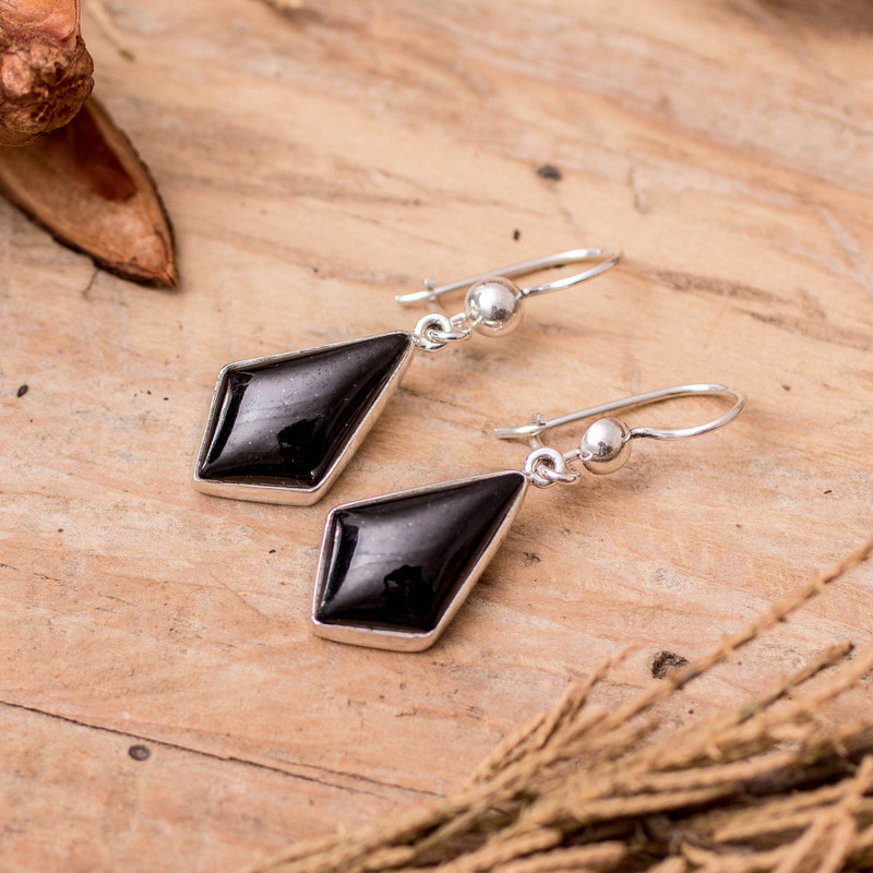 You can find our black jade dangle earrings 'Jungle Pyramids' by Zandra Lorena Sajbin in jewelry categories such as Geometric Earrings, Jade Earrings, Sterling Silver Earrings and Dangle Earrings. Enjoy exploring these sections for other Novica treasures.
