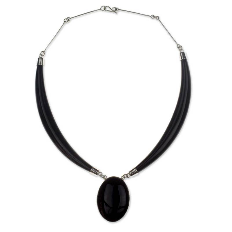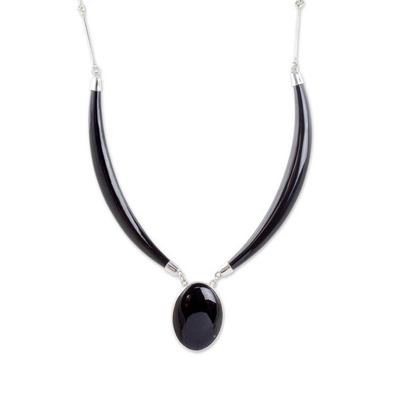 Delivery Estimate"The design of this necklace is very special to us, because we're carving large pieces of black jade and we're loving the final result," confide Ruben and Gilda Perez. They craft the necklace by hand with the luminous sheen of sterling silver for a stunning contrast.