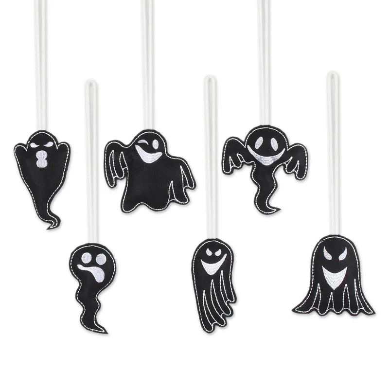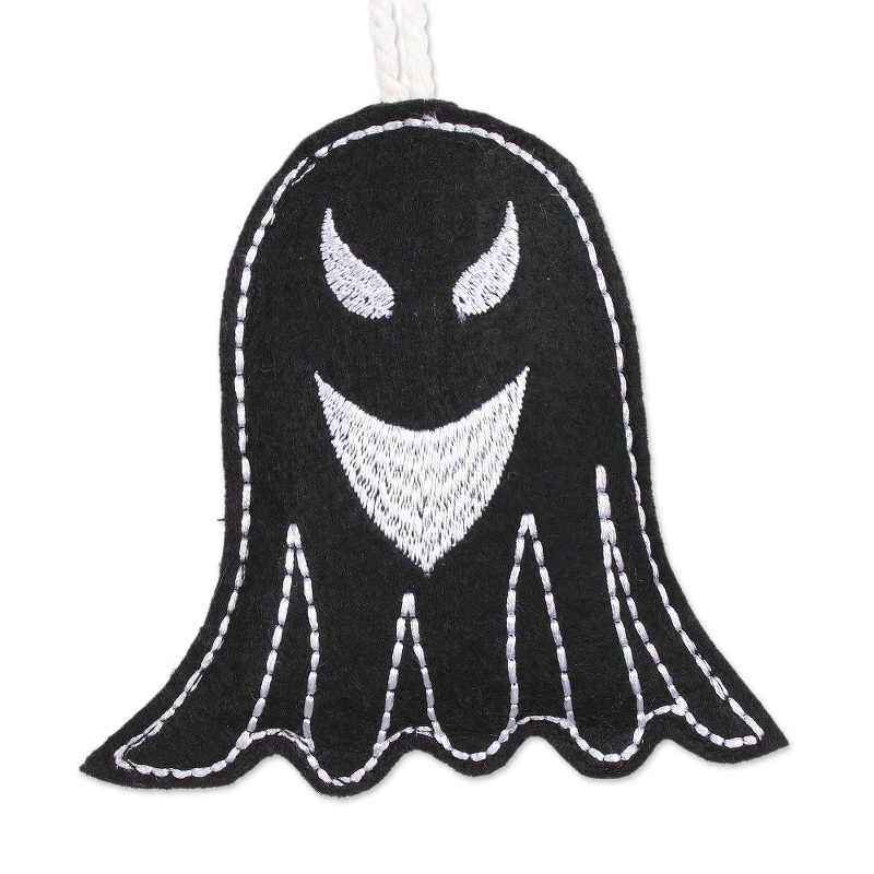 For a spooky addition to your home this Halloween, this set of six ornaments is presented by Asha Prabha in India. Six ghosts in various shapes, sizes, and expressions are made of black wool felt, accented with white embroidery. This set comes with a handy storage pouch.