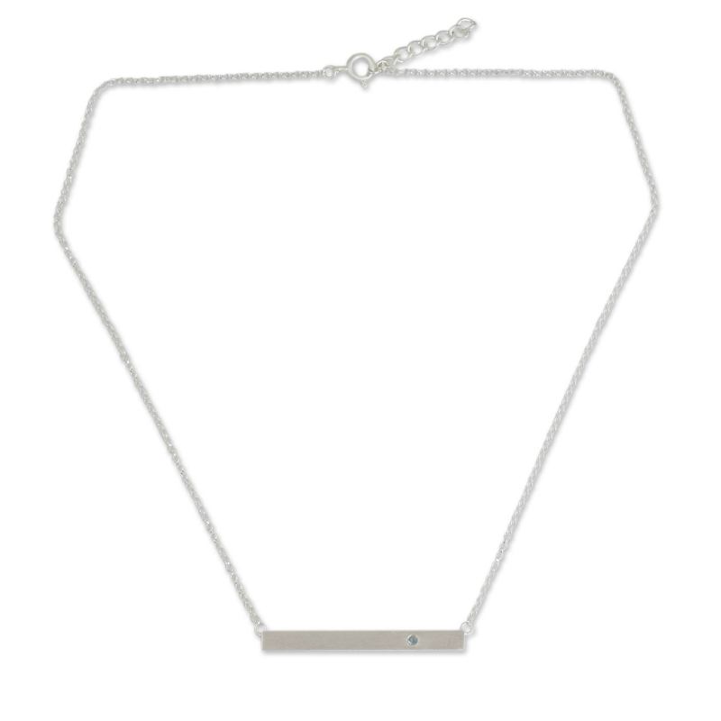 You can find our sterling silver and blue topaz pendant bar necklace 'Simply Love' by Jantana in jewelry categories such as Modern Necklaces, Birthstone Necklaces, Blue Topaz Necklaces, Silver Necklaces and Sterling Silver Necklaces. Enjoy exploring these sections for other Novica treasures.