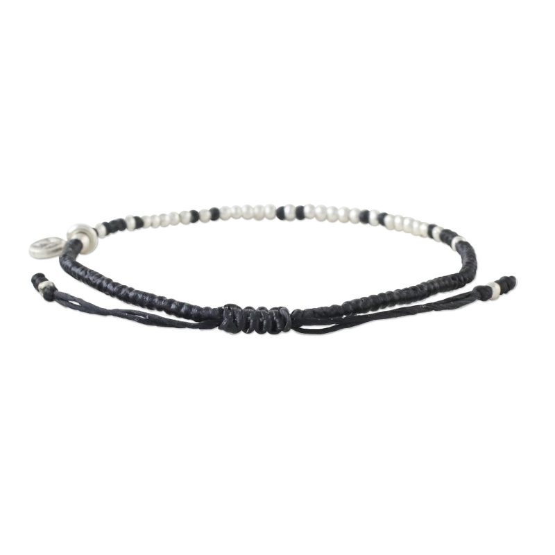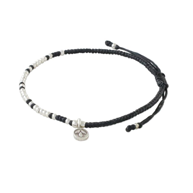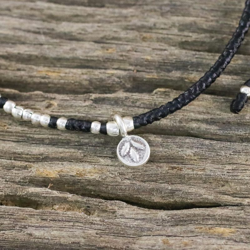 Bohemian chic is where it's at with this bracelet from Thai artisan Samart Takham. The braided cord bracelet is strung with polished beads of 950 silver, and accented with a silver charm bearing a leaf stamp from the Karen hill tribe. The adjustable length of the bracelet makes it a comfortable and versatile companion.
