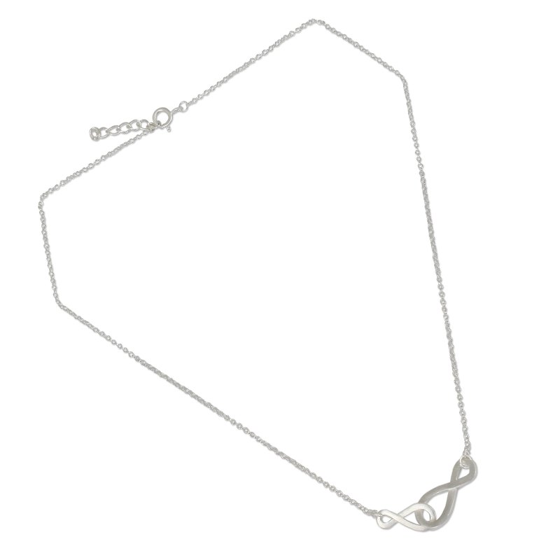 Symbolic of an everlasting friendship or a love so strong that it would survive beyond the span of a lifetime, infinity symbols grace this pendant necklace from Thailand's Jantana. She crafts the pendant from sterling silver with her trademark brushed satin finish, and centers it on a rolo style chain .