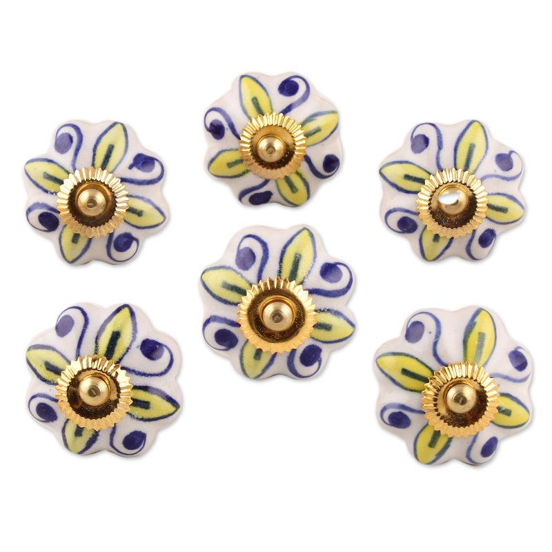 You can find our ceramic cabinet knobs 'Bright Sunshine' (set of 6) by Khalid Ali in decor accessories categories such as Hand Painted Decorative Hardware and Metal Decorative Hardware. Enjoy exploring these sections for other Novica treasures.