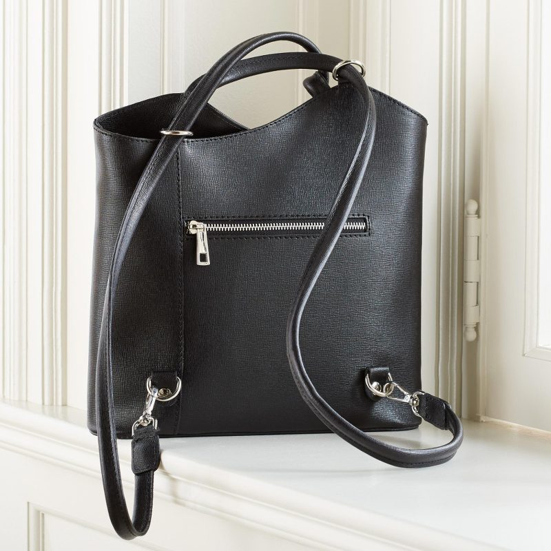 For comfort and flexibility while traveling, a convertible bag is a must. Ours is made by a Florentine leather studio using the same materials they supply to luxury handbag designers. Convert it to a backpack and go hands-free while sightseeing or pulling luggage. Carry it as a purse for a more sophisticated look while dining out or in a museum where backpacks are off-limits.