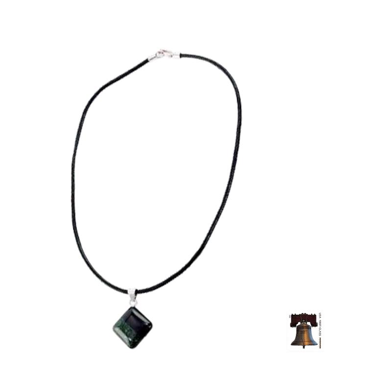 Ruben and Gilda Perez showcase the natural beauty of black and green jade in the balanced design of this cotton cord necklace. Crafted by hand, the pendant glows with jade, known to the Maya people as Ya'ax Chich. They regarded jade as sacred, the source of life and fertility.