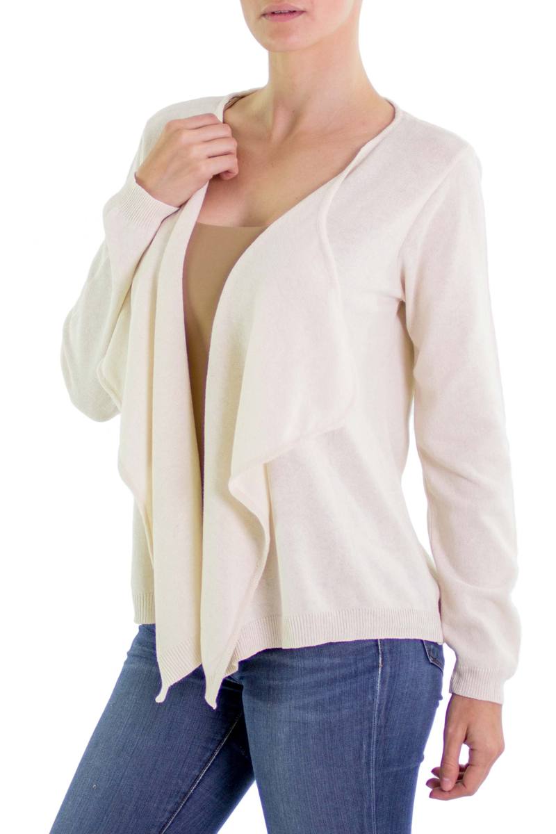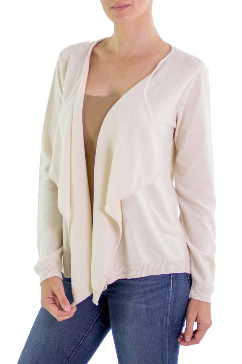 You can find our cotton wrap sweater 'Versatility' by Luisa Villavicencio in clothing categories such as Nature Sweaters, Eco-Friendly Sweaters, Cotton Sweaters and Cardigans Sweaters. Enjoy exploring these sections for other Novica treasures.
