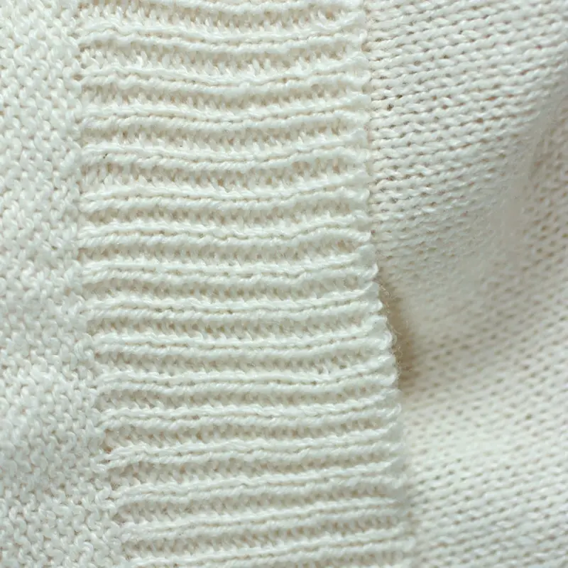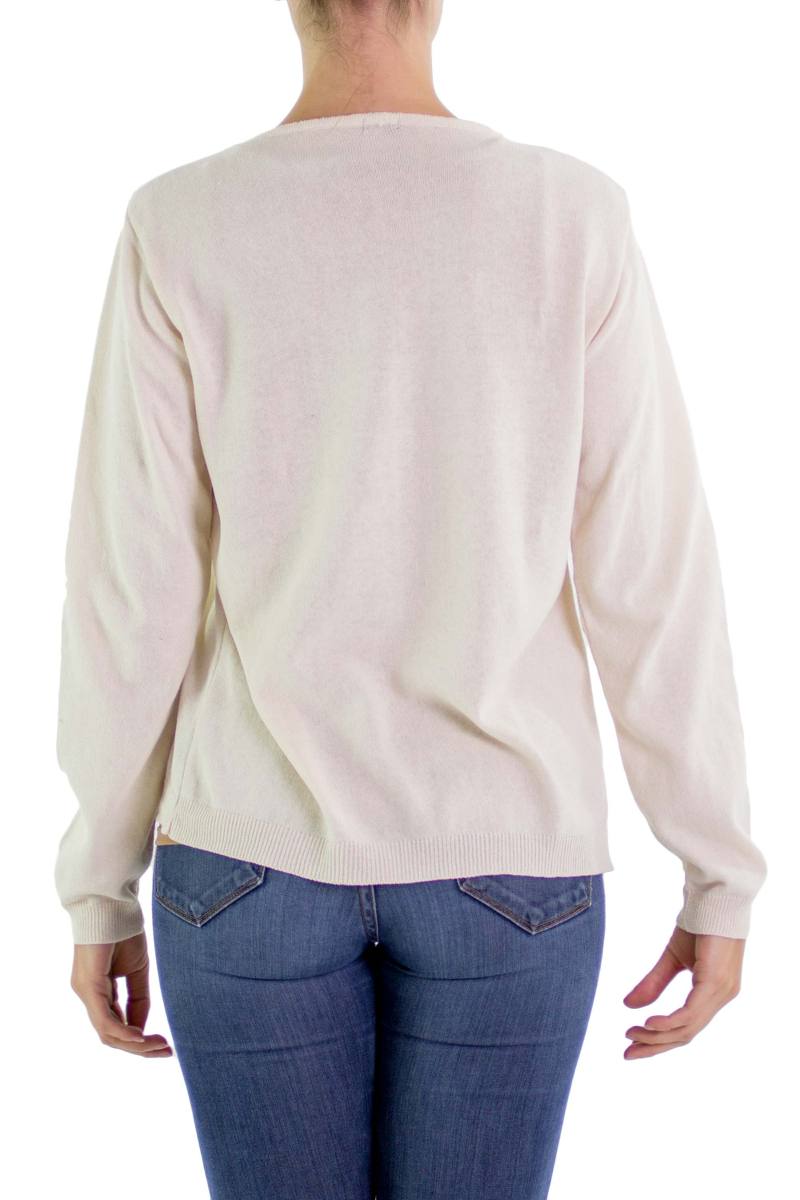 "This is like a two-in-one piece, it is designed like an open sweater with long lapels that can be wrapped like a shawl," explains Guatemalan designer Luisa Villavicencio. The wrap sweater is knitted with cotton in a natural ivory hue, which is harvested at Villencencio's farm.
