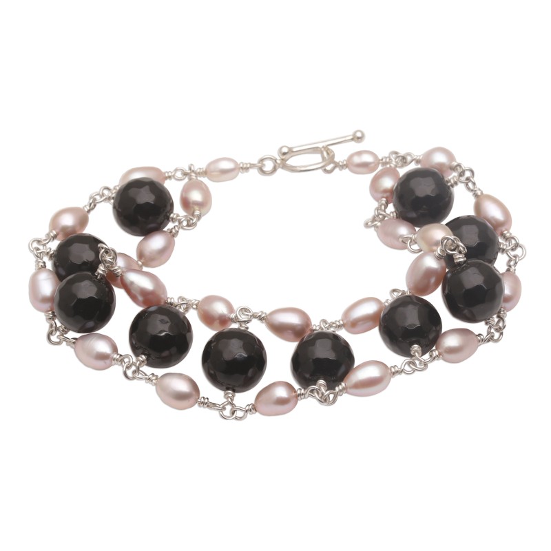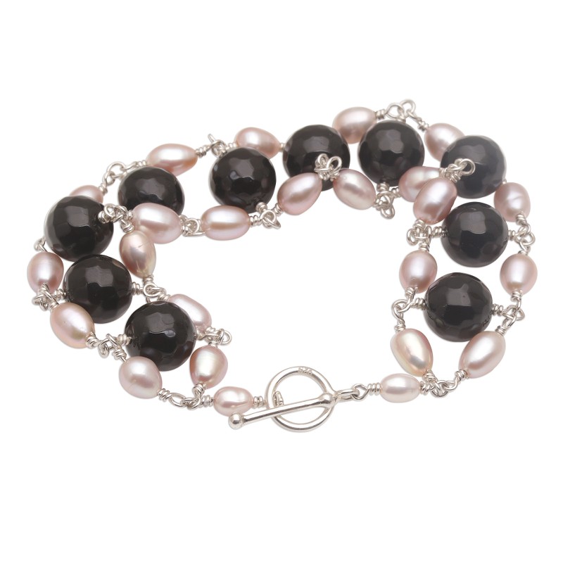 You can find our cultured pearl and onyx beaded link bracelet 'Classic Radiance' by Wayan Sarjana in jewelry categories such as Birthstone Bracelets, PEARL Freshwater Bracelets, PEARL Cultured Bracelets, Pearl Bracelets and Onyx Bracelets. Enjoy exploring these sections for other Novica treasures.