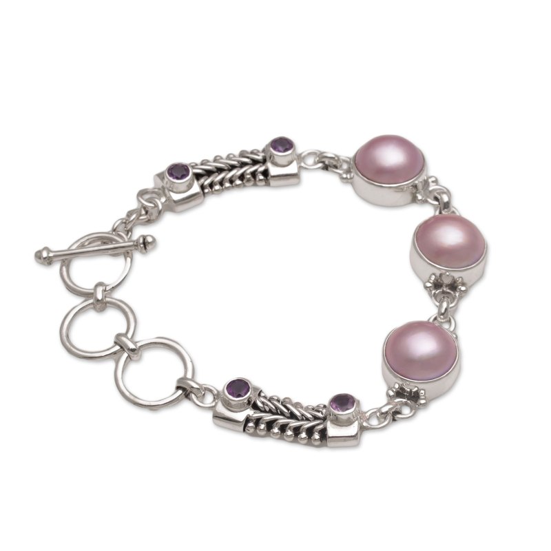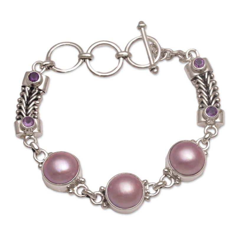 You can find our cultured mabe pearl and amethyst link bracelet 'Wangi Trio' by Buana in jewelry categories such as Birthstone Bracelets, PEARL Freshwater Bracelets, Sterling Silver Bracelets and Link Bracelets. Enjoy exploring these sections for other Novica treasures.