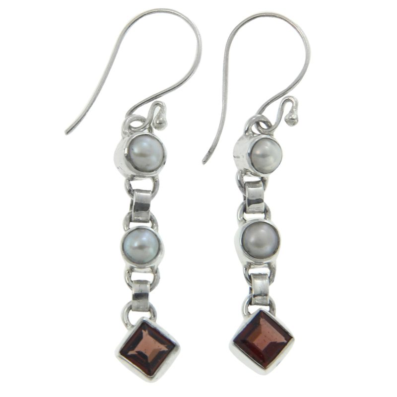 Pristine and iridescent, white pearls lead the eye to faceted garnets. The crimson gems total 1.5 carats. From Bali's Sukartini, these exquisite earrings are crafted of sterling silver.
