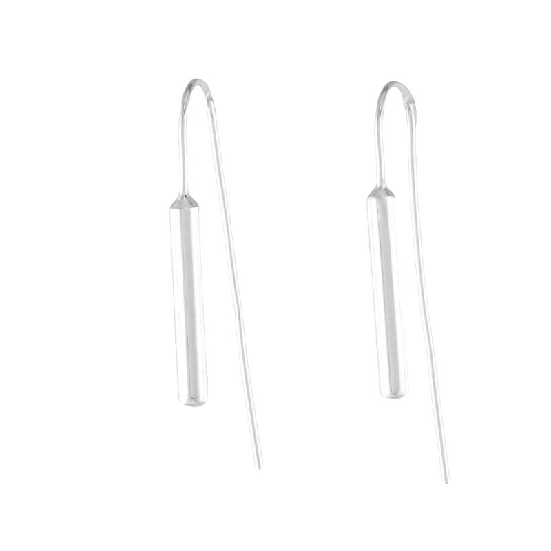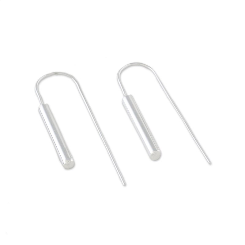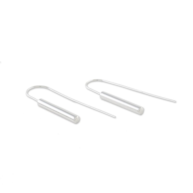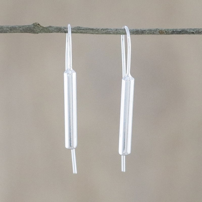 Glistening with a combination of finishes, this pair of Thai drop earrings is crafted of sterling silver to feature cylinders that resemble cattails. Lalana designs this accessory, working with local artisans to realize her visions.