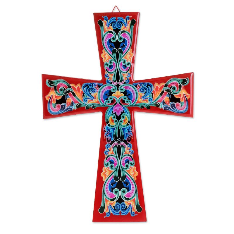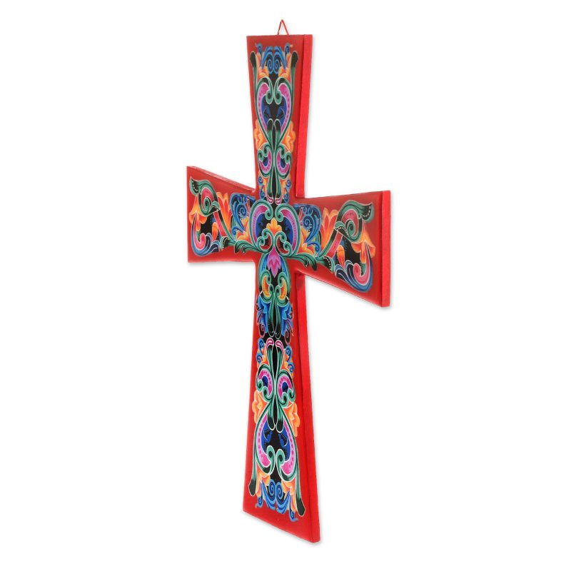 Delivery EstimateBy Costa Rica's Chaverri Brothers, this red decoupage cross features colorful vine motifs. It is crafted of wood to display on the wall as a vibrant symbol of the Christian faith.