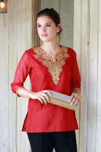 You can find our cotton and silk blend tunic 'Jaipuri Romance' by Isha Jain in clothing categories such as Embellished Tops, Silk Tops and Tunics Tops. Enjoy exploring these sections for other Novica treasures.
