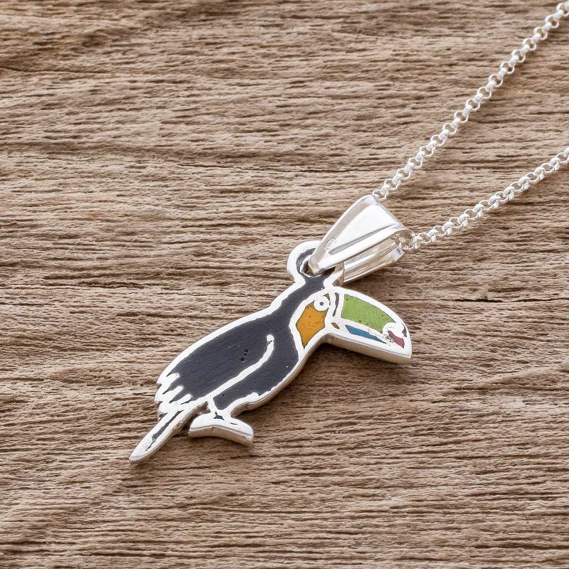 Delivery EstimateCosta Rica is a birdwatcher's paradise. Honoring her country's vast variety of fauna, Guisselle Mora depicts a toucan, denizen of the cloud forest. The pendant necklace is finely handcrafted of enameled sterling silver, revealing the bird's colors.