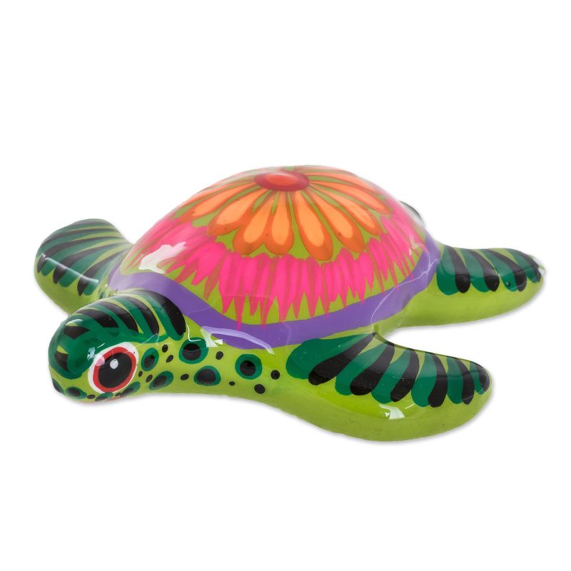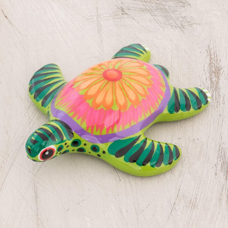 Delivery EstimateCrafted from ceramic and resin, a beautiful green sea turtle is painted by hand with a colorful floral design. Costa Rican artisans Lidia and Joaquin create this oceanic addition to your home decor.
