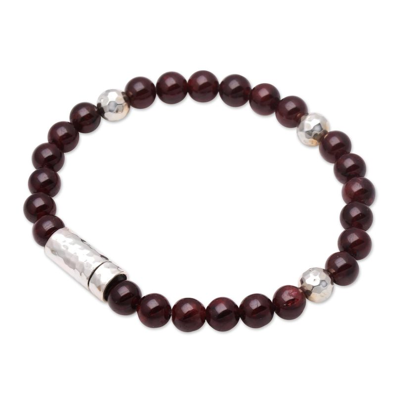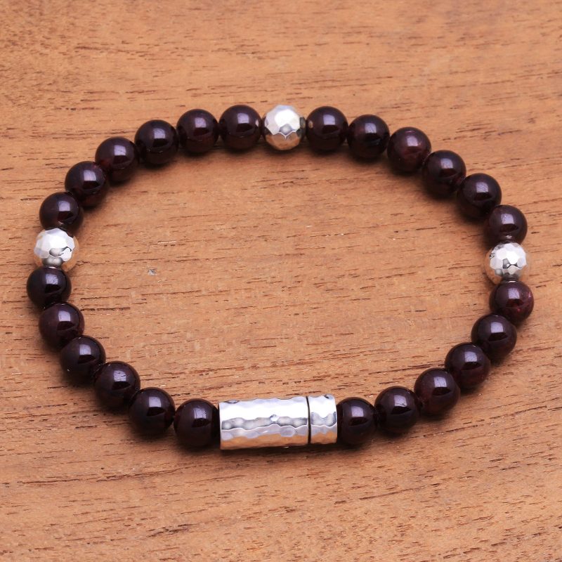 You can find our garnet beaded bracelet 'Hammered Beauty' by Nyoman Ariawan in jewelry categories such as Gemstone Bracelets, Garnet Bracelets, Sterling Silver Bracelets and Beaded Bracelets. Enjoy exploring these sections for other Novica treasures.