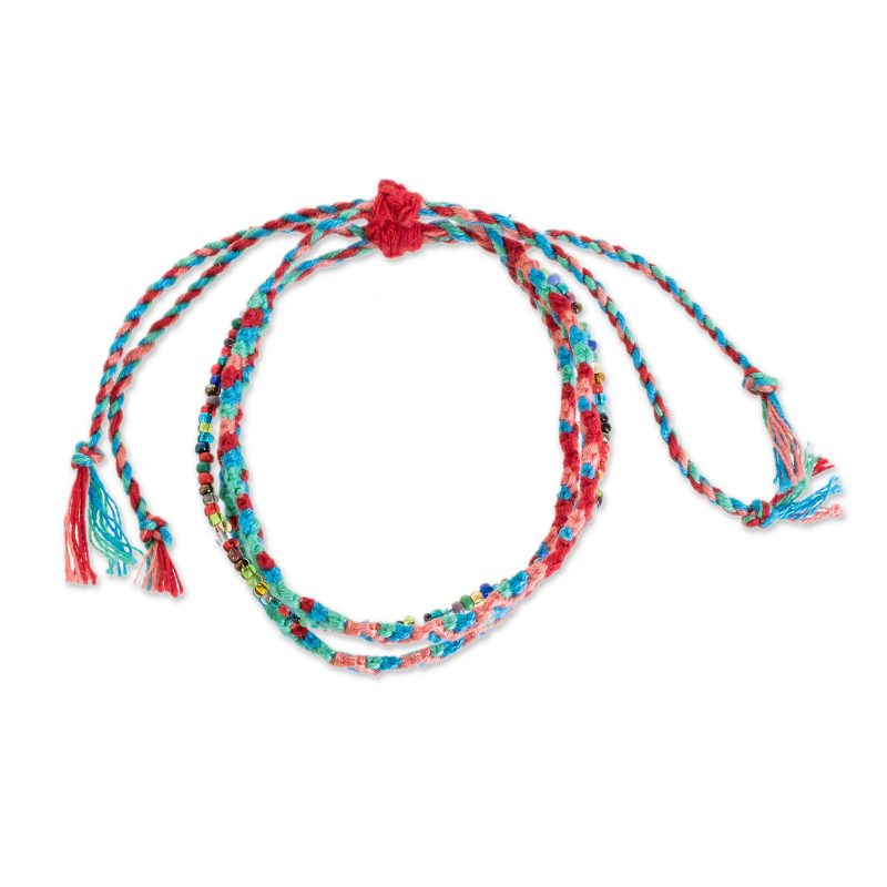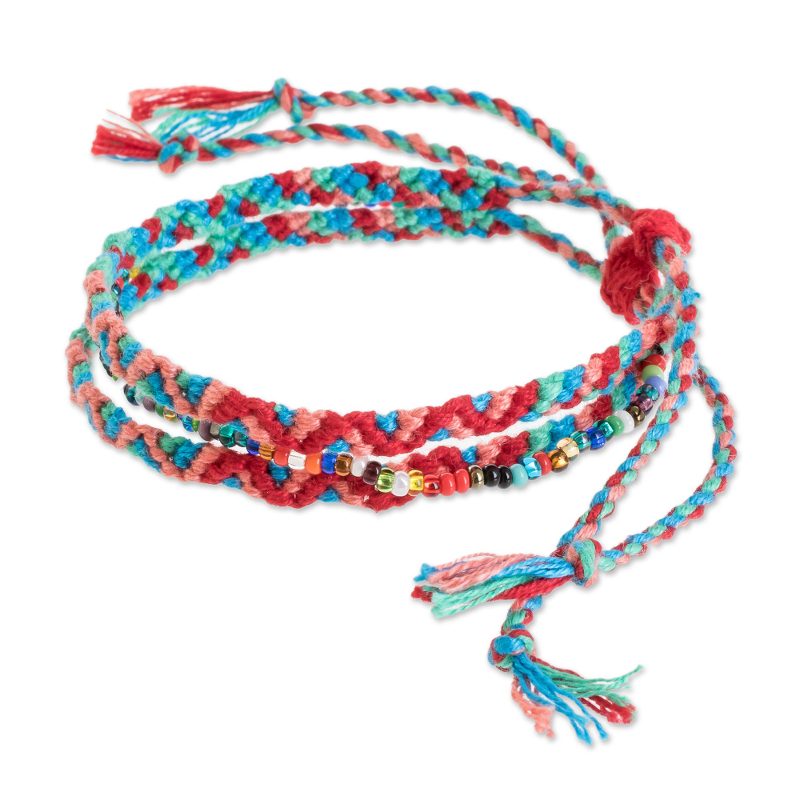Delivery EstimateEvoking the festivities in the town of Solola, colorful nylon cord is used to handcraft this macrame bracelet from Guatemala. Mirian Zet creates this adjustable bracelet, which is further accentuated with a strand of colorful glass beads.