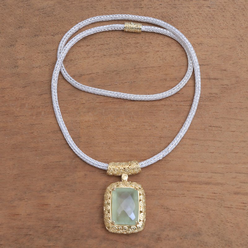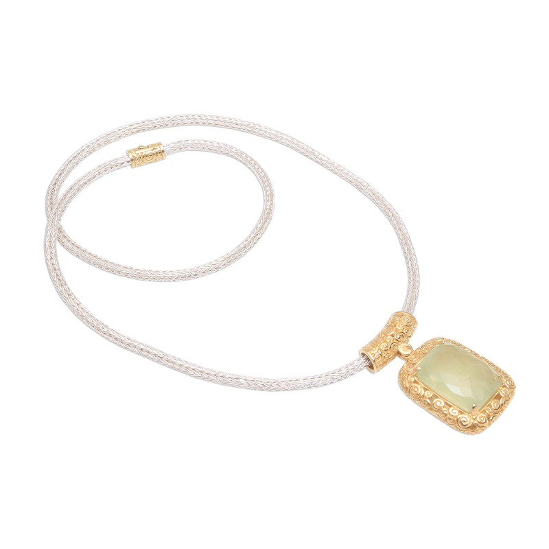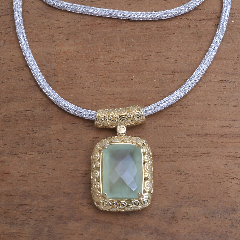You can find our gold accented prehnite pendant necklace 'Buddha's Curl Memories' by Zayd Makarim in jewelry categories such as Gemstone Necklaces, Prehnite Necklaces, Sterling Silver Necklaces and Pendant Necklaces. Enjoy exploring these sections for other Novica treasures.