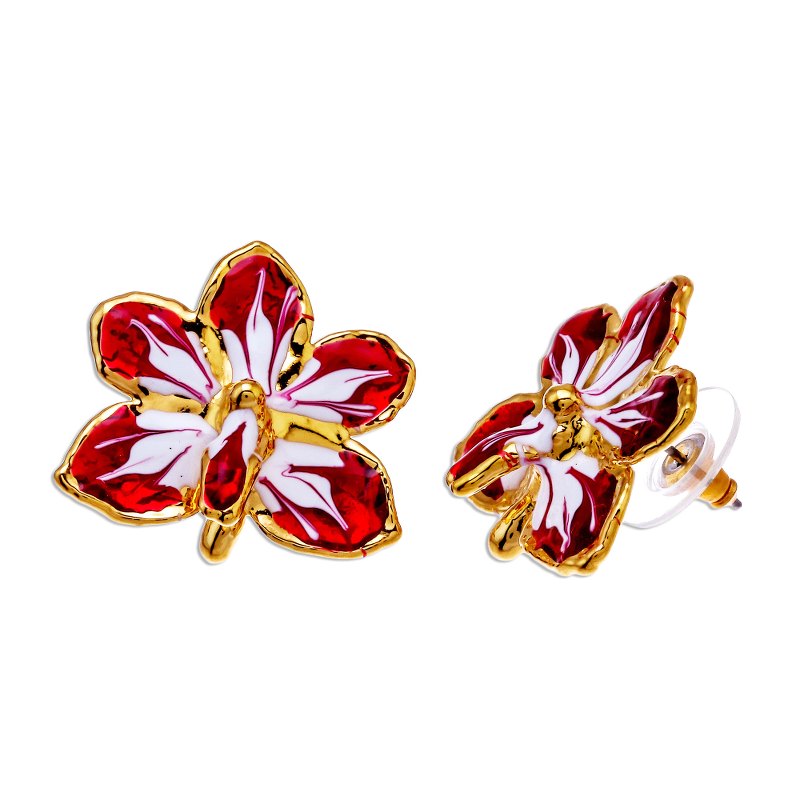 Danai treasures the timeless beauty of an Ascocentrum orchid in the original design of these earrings. The gold-plated flowers are painted by hand with enamels, accentuating its natural grace and beauty.