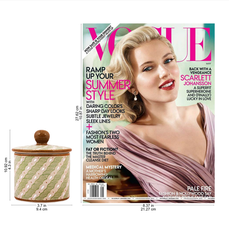 This jar is beautifully handcrafted in a complimentary combination of colors and pattern. It looks just as pictured in person and is the perfect size to hold items in my bathroom. I look forward to purchasing more items from this artisan again!