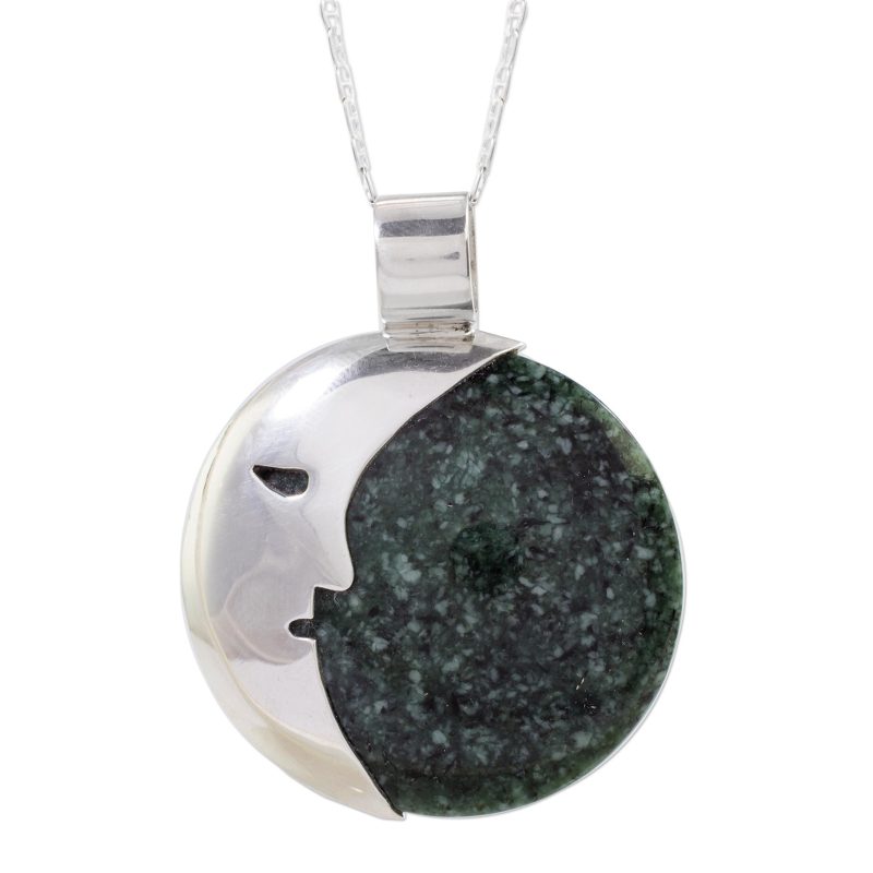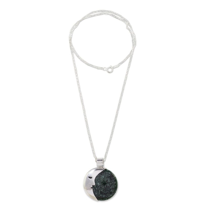You can find our jade pendant necklace 'Face of the Moon in Dark Green' by Zandra Lorena Sajbin in jewelry categories such as Sun and Moon Necklaces, Moon Necklaces, Jade Necklaces, Silver Necklaces and Sterling Silver Necklaces. Enjoy exploring these sections for other Novica treasures.