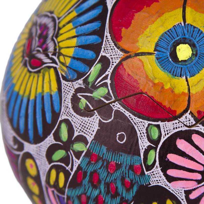 Teodolinda Seguil of Peru captures the blooms and birds of an Andean garden in this decorative gourd box. Hand carved and hand painted in a vibrant cornucopia of color, this decorative box is a unique work of art.