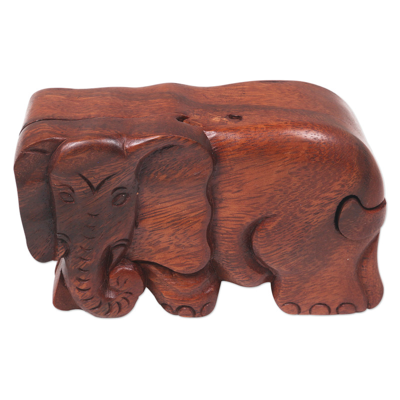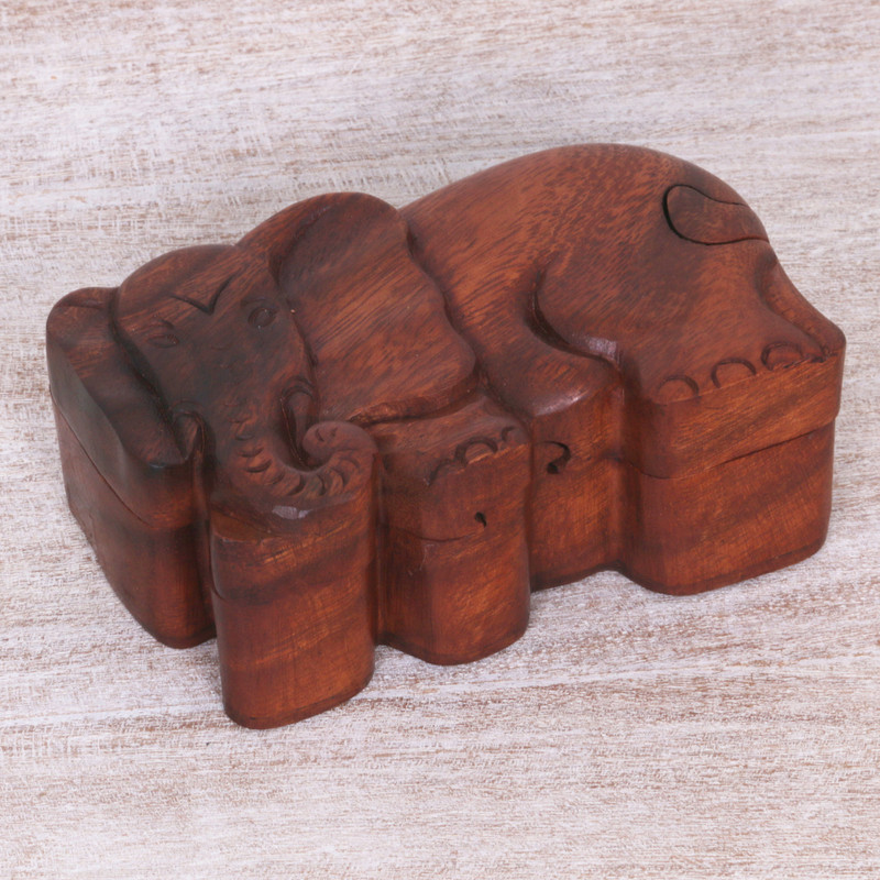 You can find our wood puzzle box 'Staring Elephant' by Sarwaedi in decor accessories categories such as Animal Themed Decorative Boxes, Puzzle Decorative Boxes and Wood Decorative Boxes. Enjoy exploring these sections for other Novica treasures.