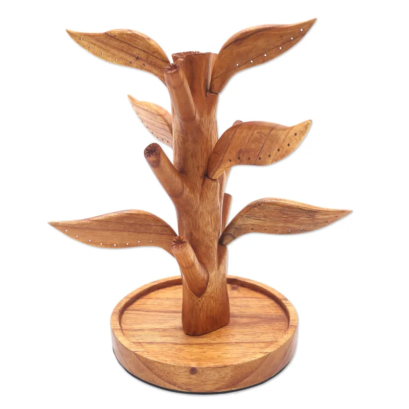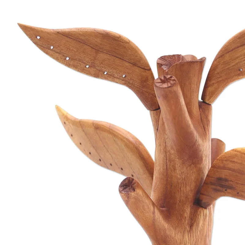 Handmade from local jempinis wood, this jewelry stand is a work of art in its own right. Bali's Komang Sulaksana presents this versatile piece, which can accommodate earrings, rings, and bracelets on its leaves and branches.
