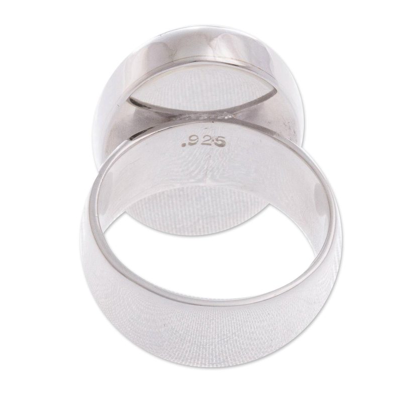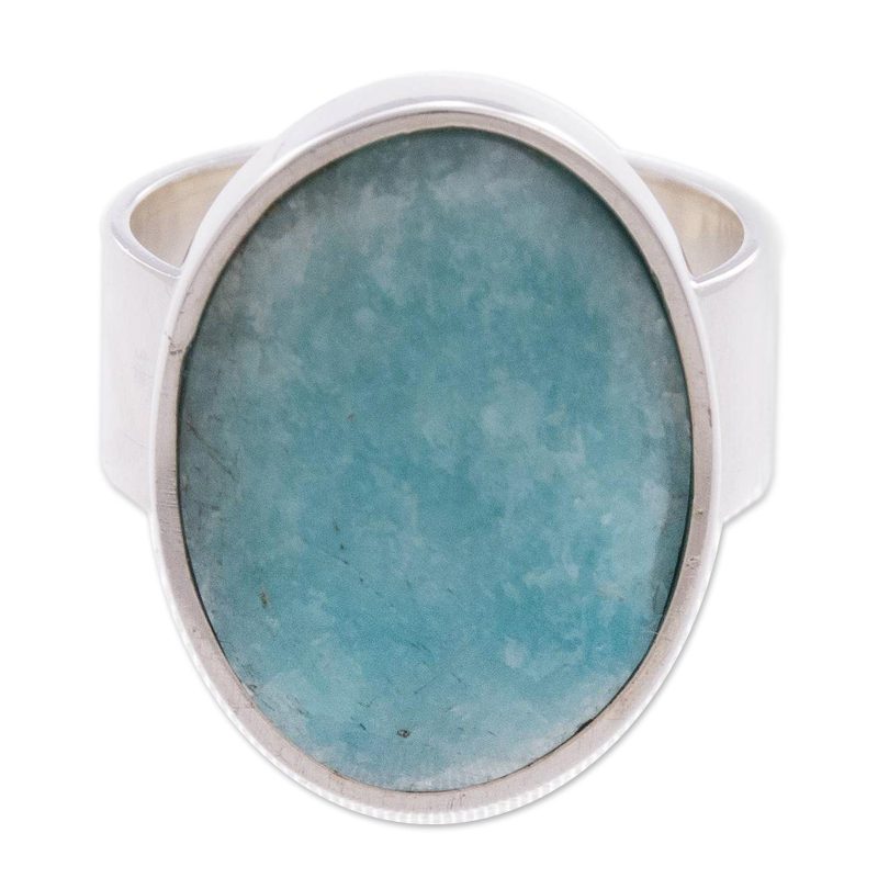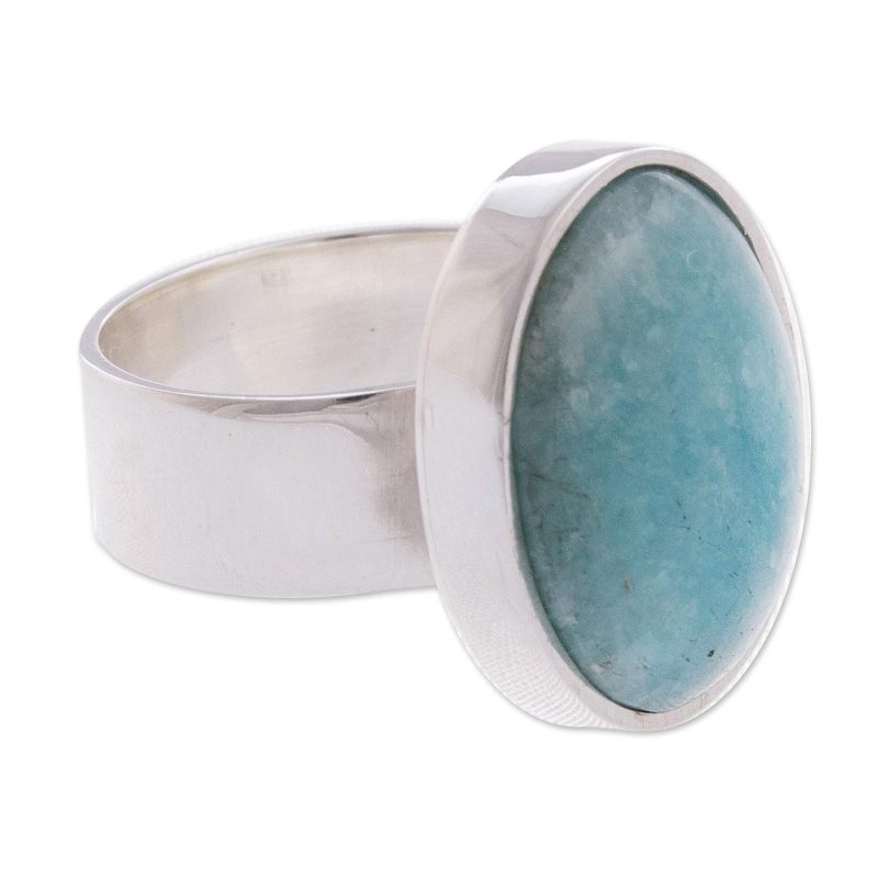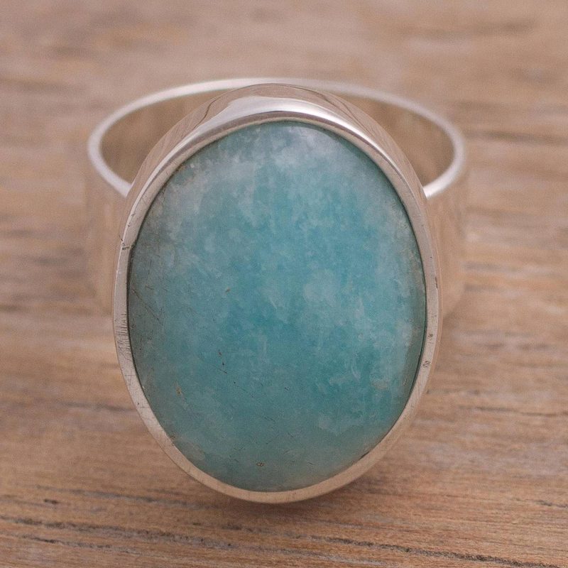 Leslie Granthon selects amazonite, gem of kindness and practicality, to crown the design of this ring. The blue gem is inlaid on a sterling silver ring that is crafted by hand in Peru.