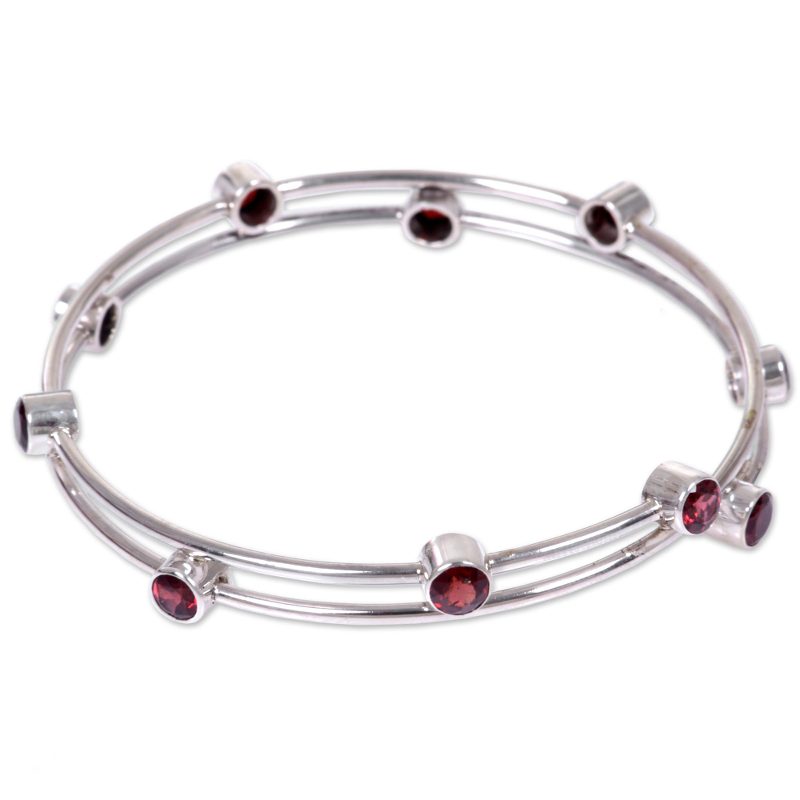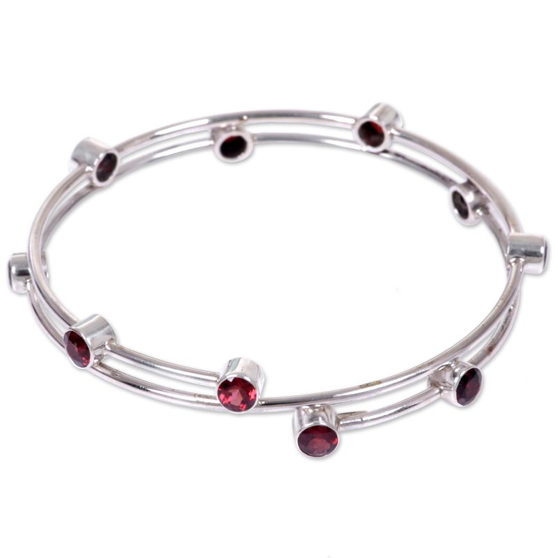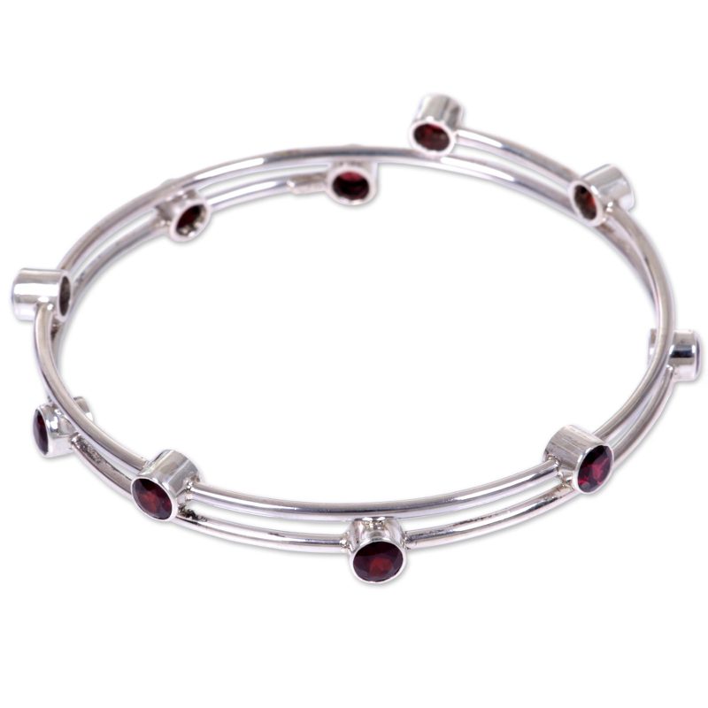 You can find our garnet bangle bracelet 'Orchid Twist in Red' by Komang Suastra in jewelry categories such as Birthstone Bracelets, Garnet Bracelets, Silver Bracelets, Sterling Silver Bracelets and Bangle Bracelets. Enjoy exploring these sections for other Novica treasures.